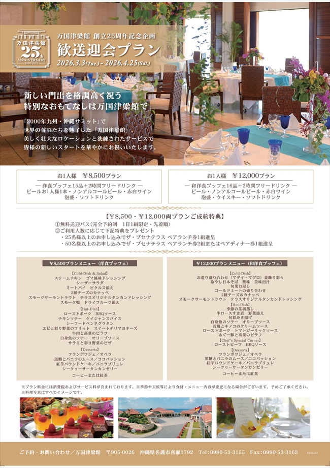 〜沖縄県内在住の皆様だけにご案内する歓送迎会プランです〜